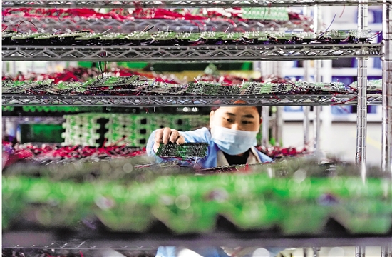 宁波市镇海锂安电子有限公司的工人正在加紧生产。
