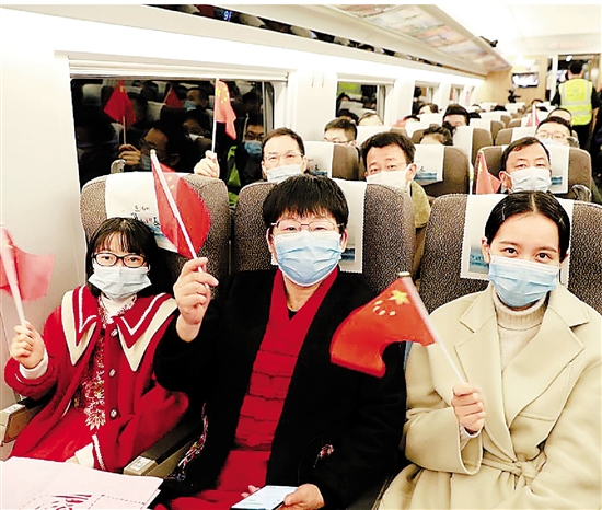 ↓2022年1月8日,杭台高铁正式开通运营。首批乘客体验杭台高铁。