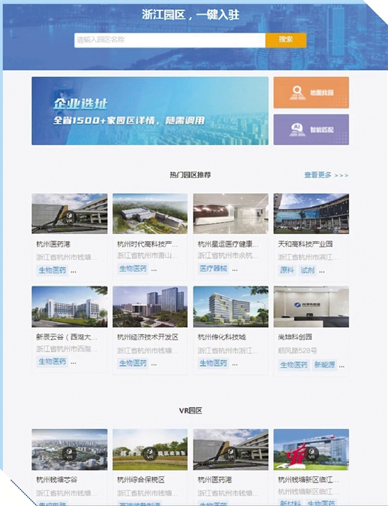 钱塘试点“一键找园”特色场景建设,吸引1555家园区入驻。