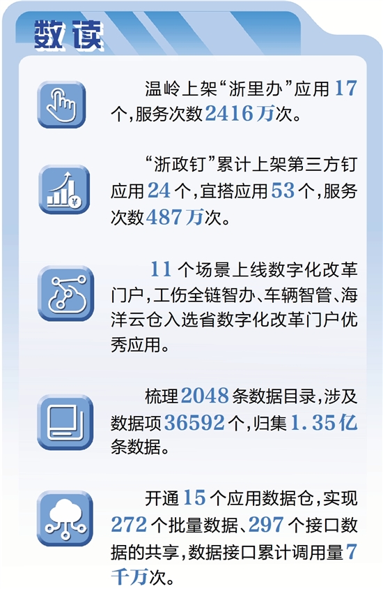 温岭上架“浙里办”应用17个,服务次数2416万次。