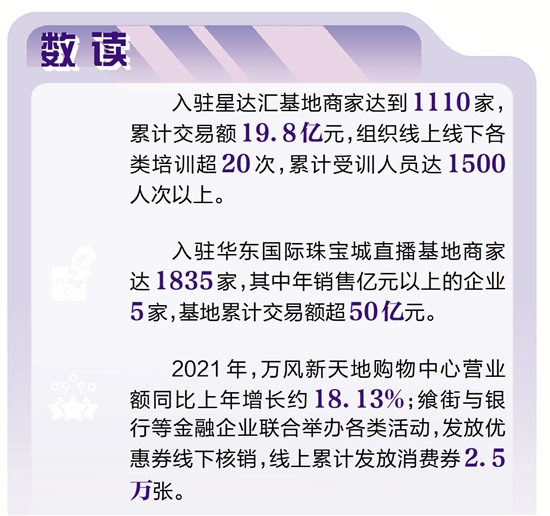 入驻星达汇基地商家达到1110家,累计交易额19.8亿元,组织线上线下各类培训超20次,累计受训人员达1500人次以上。