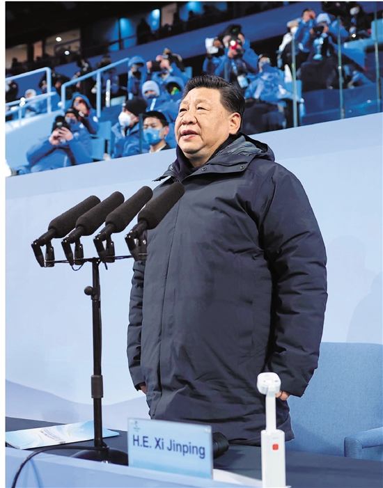 2月4日晚,北京第二十四届冬季奥林匹克运动会开幕式在国家体育场隆重举行。国家主席习近平出席开幕式并宣布本届冬奥会开幕。 新华社记者 鞠鹏 摄