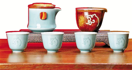 瑞虎赐福青瓷茶具系列。