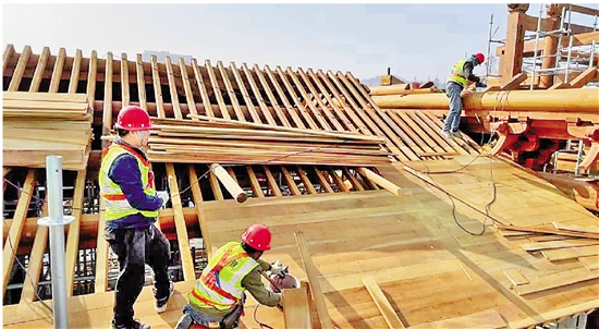 德寿宫遗址保护展示工程暨南宋博物院(一期)项目现场,工人们正在抢抓工期。 本报记者 周逸 摄