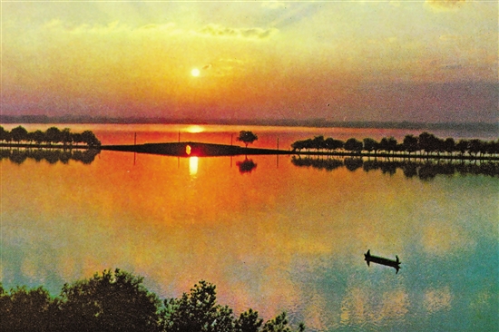 《西湖晨曦》。 张侯权拍摄。摄于1963年,杭州西湖新新饭店。