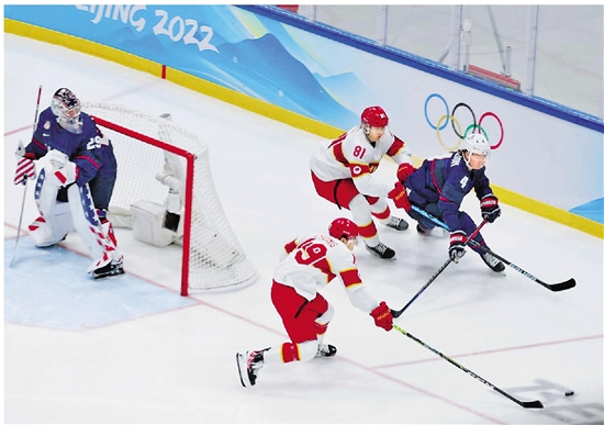 2月10日,在国家体育馆举行的北京2022年冬奥会男子冰球小组赛中,中国队对阵美国队。 天目新闻记者 倪雁强 摄