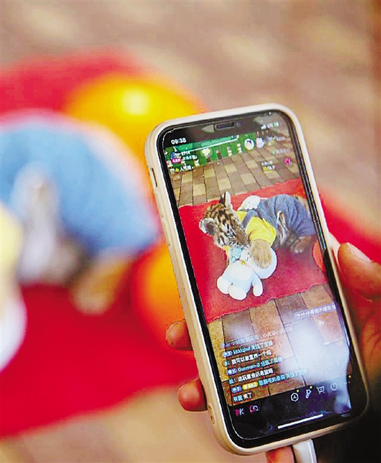 施霞敏通过直播平台向网友展示小虎崽的成长过程。