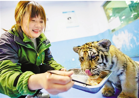 遇到挑食的虎崽,施霞敏就一口口地喂食。