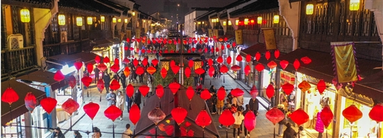 2月15日晚,500余只“宋式灯笼”点亮杭州清河坊历史街区。 本报记者 董旭明 摄