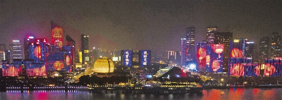 2月15日晚,杭州钱江新城虎年元宵节主题灯光秀惊艳亮相。灯光秀分为元宵主题,抗疫主题,亚运主题和杭州主题,带来属于元宵的祝福与红火。 本报记者 吕之遥 摄