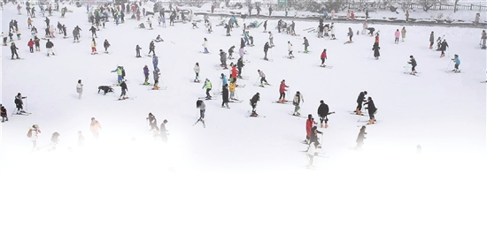 北京冬奥会带热了冰雪运动。2月5日,在安吉县天荒坪镇的滑雪场,众多游客尽享冰雪运动的乐趣。 拍友 夏鹏飞 摄