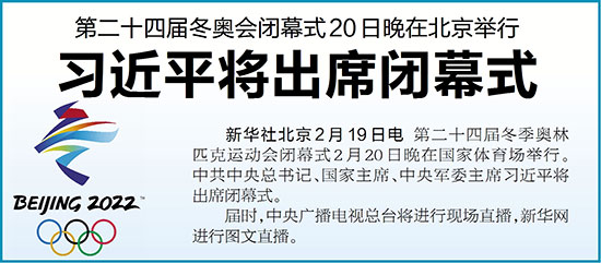 新华社北京2月19日电 第二十四届冬季奥林匹克运动会闭幕式2月20日晚在国家体育场举行。中共中央总书记、国家主席、中央军委主席习近平将出席闭幕式。