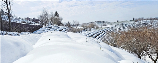 2月21日,在宁波余姚市大岚镇姚江源头,万亩茶园仍被几天前的一场春雪覆盖。 拍友 吴大庆 摄
