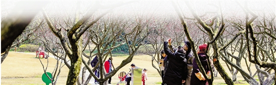 2月23日,长兴县龙山街道梅花公园的红梅进入盛开期。市民纷至沓来,拍照留影。 拍友 谭云俸 周洪峰 摄