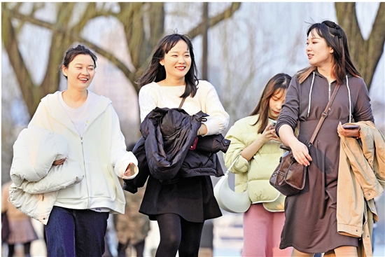 2月28日,杭州西湖景区,众多游客褪下厚重冬装,在阳光中欣赏湖光山色。 本报记者 徐彦 摄