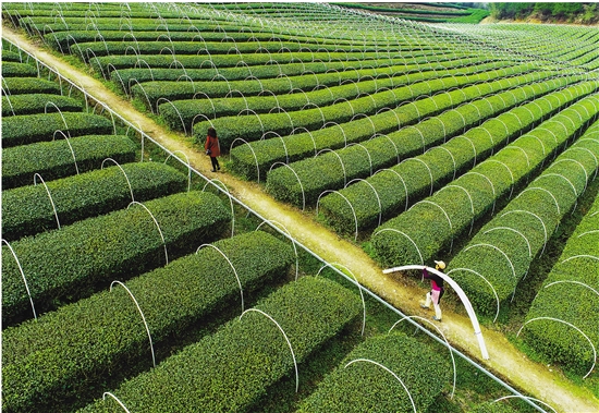 3月1日,淳安县枫树岭镇一茶园里,茶农正在搭建塑料大棚支架。目前,该基地400多亩茶园已进入初春发芽期,利用塑料大棚覆盖栽培茶树,可使春茶提前采收,并提高品质,大幅增加经济效益。 拍友 王建才 摄