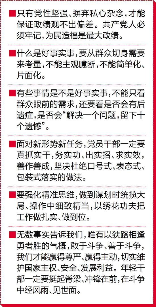 ■只有党性坚强、摒弃私心杂念,才能保证政绩观不出偏差。共产党人必须牢记,为民造福是最大政绩。