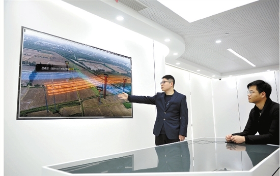 在数智设计中心,设计人员运用数图多元信息融合技术展示出的虚实结合路径图,对工程路径选线进行论证。 钱涛 摄