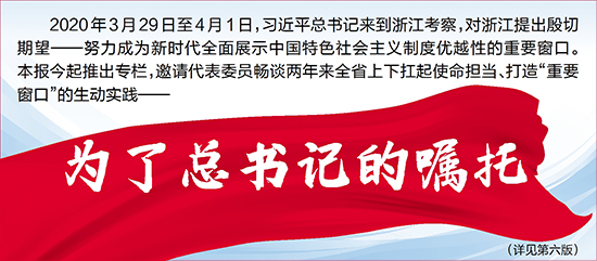 2020年3月29日至4月1日,习近平总书记来到浙江考察,对浙江提出殷切期望——努力成为新时代全面展示中国特色社会主义制度优越性的重要窗口。本报今起推出专栏,邀请代表委员畅谈两年来全省上下扛起使命担当、打造“重要窗口”的生动实践——