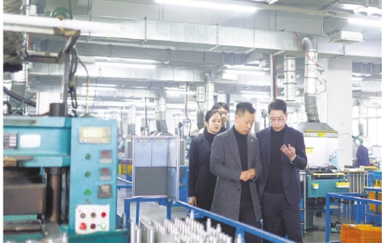 客户经理走访当地制造业企业生产车间,了解企业经营发展情况,为企业提供金融支持。