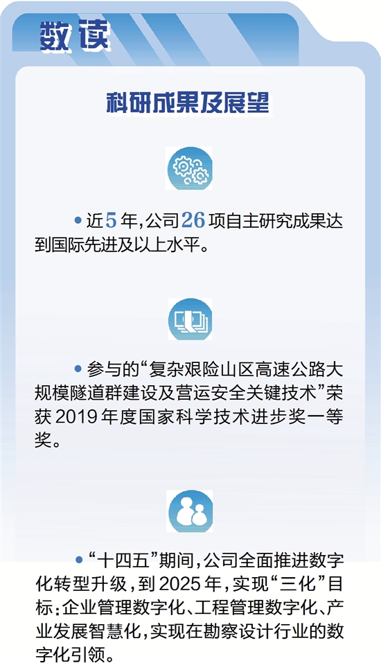 •“十四五”期间,公司全面推进数字化转型升级,到2025年,实现“三化”目标:企业管理数字化、工程管理数字化、产业发展智慧化,实现在勘察设计行业的数字化引领。