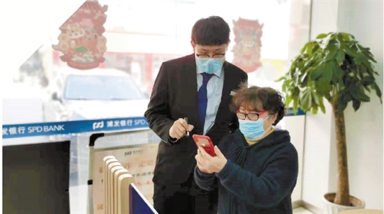 工作人员教老年人使用相关金融产品 图片由浦发银行金华分行提供