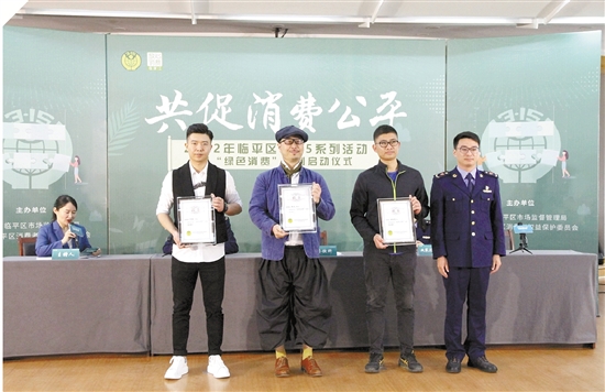 临平区市场监管局为全区首批“绿色消费大使”颁发聘书。