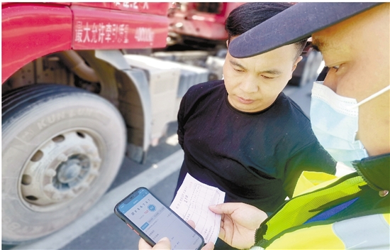 工作人员用货运车辆诚信管理系统查看过境车辆信息 (图片由长兴县煤山镇提供)