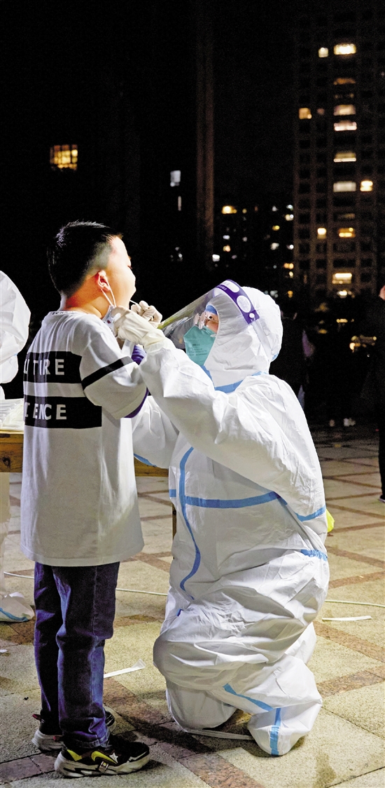 | 你单膝下跪的样子,真美! 最近两天,金华市金东区东孝街道、塘雅镇等地开展全员核酸检测。检测对象有不少是孩子,医务人员单膝下跪进行采样。金华市中心医院的陈琴就是其中之一,在20分钟的时间里,她重复这样的动作十几次。 本报记者 朱浙萍 傅颖杰 共享联盟金华中心站 黄泽振 王志金 文/摄 |