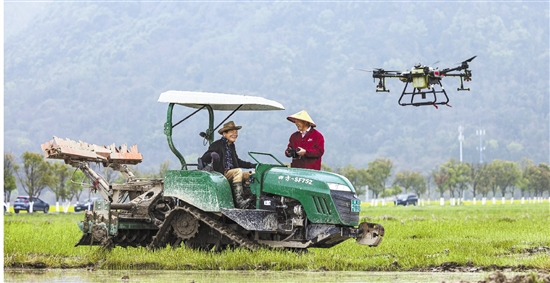 连日来,瑞安市曹村镇天井垟一片繁忙春耕景象,人们正进行机械翻土、秧田旋耕作业,无人机在采集农田信息。为助力打好春耕“第一仗”,瑞安农商银行落实金融助农举措,使更多科技手段和机械设备为农所用。 拍友 施小明 摄
