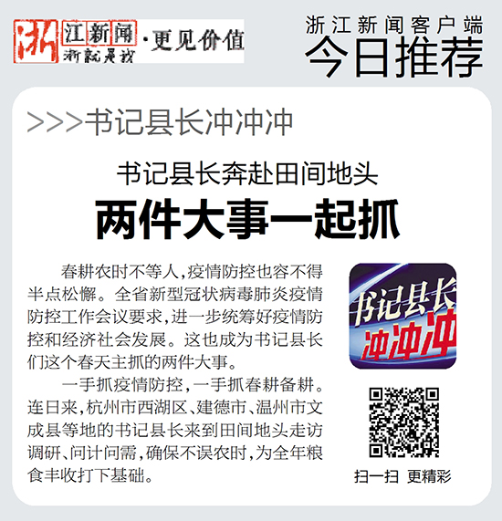 一手抓疫情防控,一手抓春耕备耕。连日来,杭州市西湖区、建德市、温州市文成县等地的书记县长来到田间地头走访调研、问计问需,确保不误农时,为全年粮食丰收打下基础。