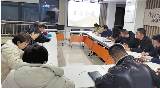吴兴区湖东街道东柿社区开展“五方会谈”,就垃圾驿站改造、地库垃圾堆放、坡道改造、停车难等问题进行讨论。 唐诗 摄