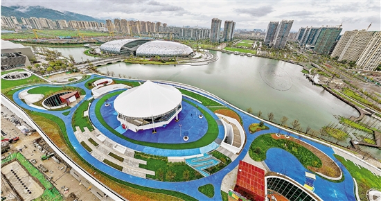 | 3月25日,位于德清县地理信息小镇的杭州亚运会三人制篮球场馆项目顺利通过赛事功能验收。该场馆建筑面积5万平方米,含三人制篮球比赛场地、训练场地、运动员休息区及室外景观配套等。图为从空中俯瞰杭州亚运会三人制篮球场馆。 拍友 伊凡 摄 |