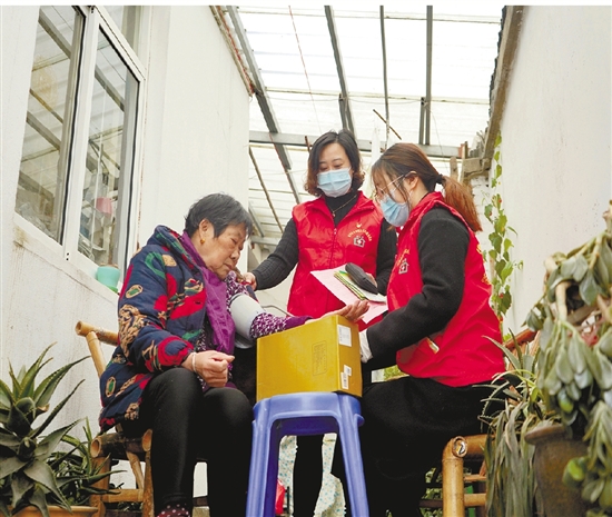 双林“三桥先锋”队党员志愿者上门为老年人开展健康体检 张斌 摄