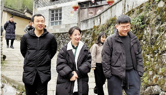 驻镇规划师季薇(中)与乡镇干部交流 本报记者 朱承 摄