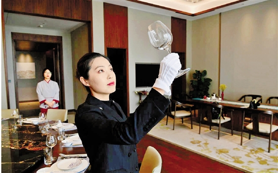 胡乃榕检查餐具光洁度。 拍友 时补法 摄