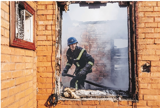 3月23日,消防员在乌克兰基辅市一处受损的房屋内工作。新华社发