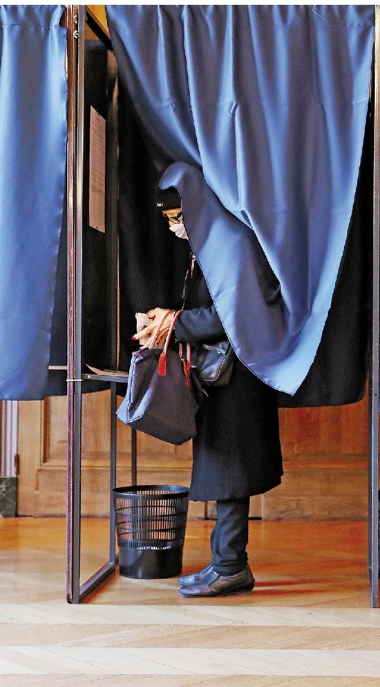 4月10日,市民在法国巴黎郊区的克里希市一家投票站投票。 新华社发