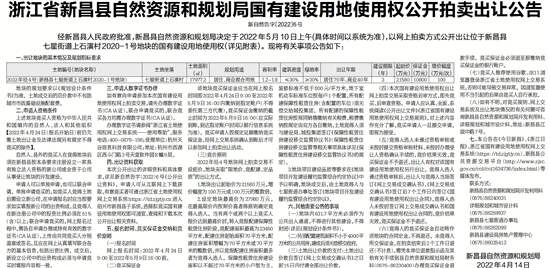 七、本公告在《今日新昌》、《浙江日报》、浙江省国有建设用地使用权网上交易系统(https://td.zjgtjy.cn)、新昌县公共资源交易平台(http://www.zjxc.gov.cn/col/col1634736/index.html)等媒体发布。