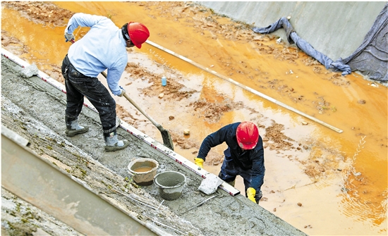 | 4月13日,金华市汤溪镇宅口村,乌溪江引水工程灌区(金华片)“十四五”续建配套与现代化改造工程现场,施工人员在进行渠道砂浆抹面施工。 作为浙江省最大的灌区,建成于上世纪90年代的乌溪江引水工程灌区,覆盖人口83.72万,惠及农田54.65万亩,是一条横跨金衢两地的重要“生命线”。然而工程运行近30年,在安全性、功能性以及便民等方面都有待再提升。为此,浙江省2021年11月启动乌引灌区“十四五”续建配套与现代化改造工程,将通过渠系改造、数字化管理体系建设、便民项目打造等全面提升灌区安全指数和幸福指数。整个工程预计2024年3月完工。 胡肖飞 摄 |