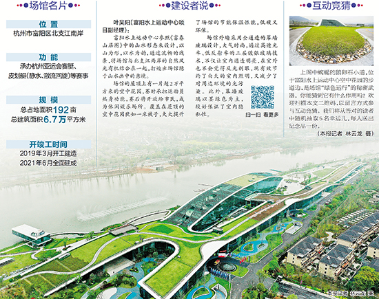 上图中蜿蜒的鹅卵石小道,位于富阳水上运动中心空中花园的步道边,是场馆“绿色运行”的秘密武器。你能猜到它有什么作用吗?欢迎扫描本文二维码,以留言方式参与互动竞猜。我们将从答对的读者中随机抽取5名幸运儿,每人送出纪念品一份。