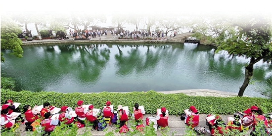 嘉兴市青少年宫组织学生到南湖写生。 省青少年校外教育中心供图