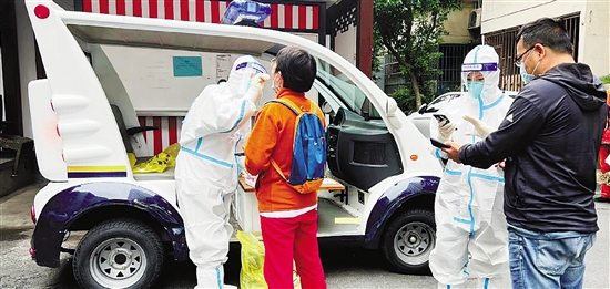 杭州市上城区湖滨街道流动核酸采样车把核酸采样服务送到居民楼下。 湖滨街道供图