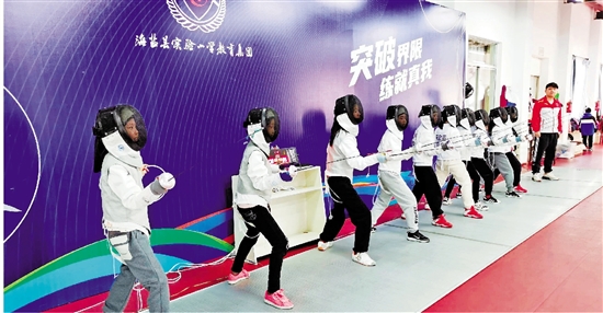 海盐县实验小学教育集团引进击剑课程。 张斌 摄