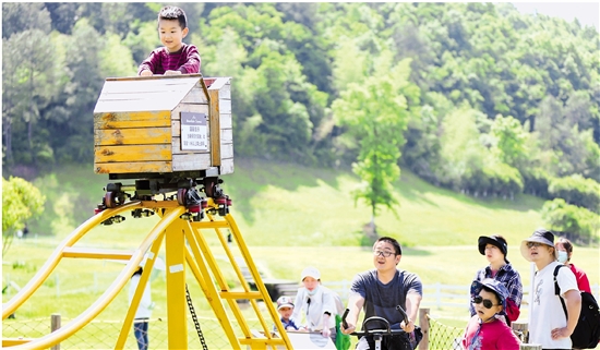 5月4日,杭州市临安区昌化风之谷景区内,游客们开心地享受着“五一”假期最后一天。“五一”期间,昌化风之谷景区共接待游客2万余人,乡村亲子游、短途自驾游成为人们主要的休假方式。 拍友 胡建强 徐咪娜 摄