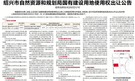 4.本次出让信息可在中国土地市场网(www.landchina.com)、上虞区公共资源交易中心网站(http://xxgk.shangyu.gov.cn/col/col1228984905/)查询。