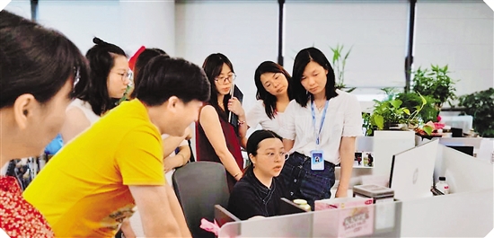 浙报集团嘉兴分社记者与共享联盟嘉善站成员进行业务交流分享。