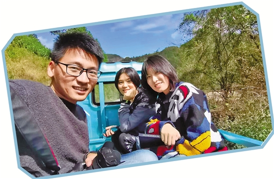 台州分社记者叶剑锋(左)、徐子渊(右)跟共享联盟仙居站应芳露(中),一起在仙居田市镇采访乡村医生柯森海。