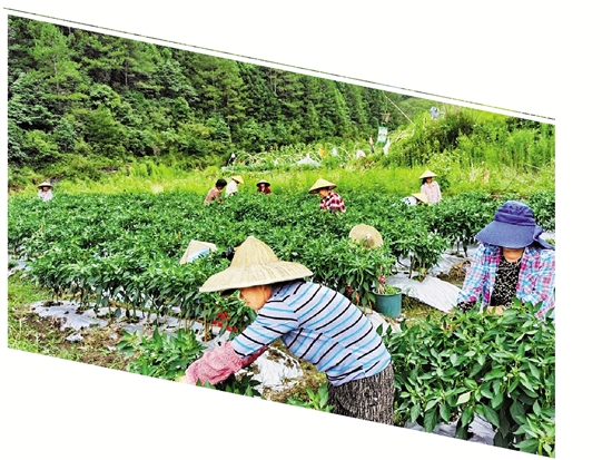 岭头乡小尖椒基地丰收季,村民们忙着采摘小尖椒。
