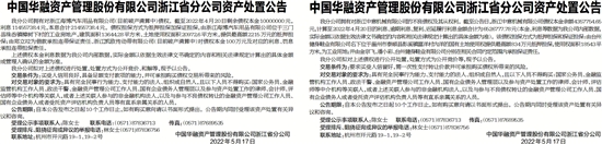 中国华融资产管理股份有限公司浙江省分公司资产处置公告